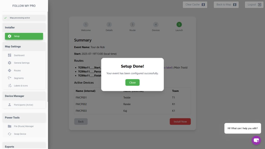 You should then see a confirmation message letting you know that the setup is complete and the map settings have all been updated.